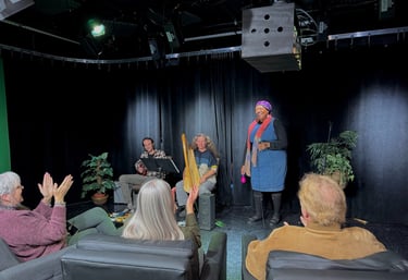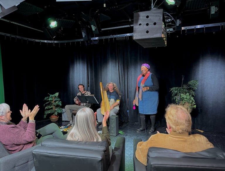We play from a cozy studio nestled among tall trees, where earth tones inspire every note.