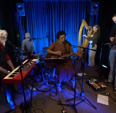 Join us for intimate concerts filled with heartfelt roots music, blending dark browns and greens into every soulful note we play.